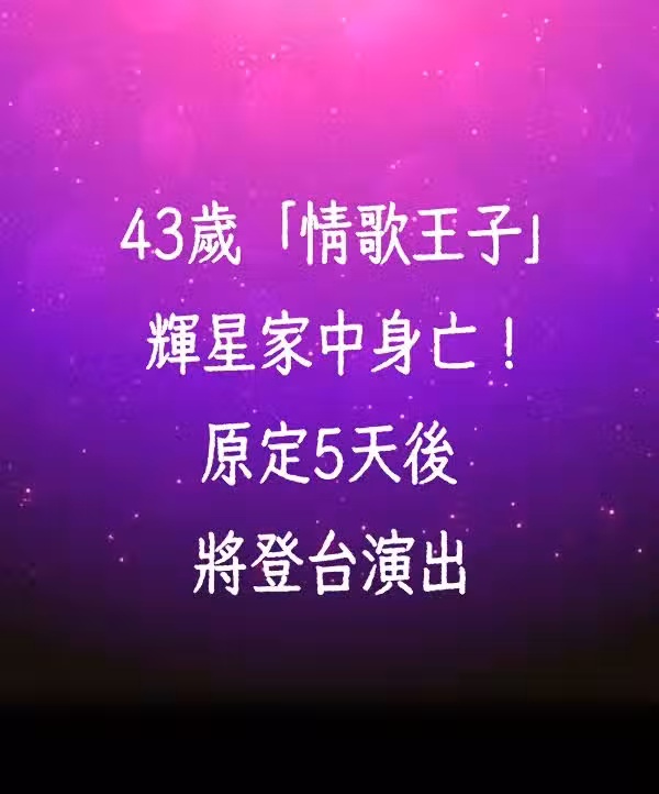 43歲「情歌王子」輝星陳屍家中! 原定5天後將登台演出