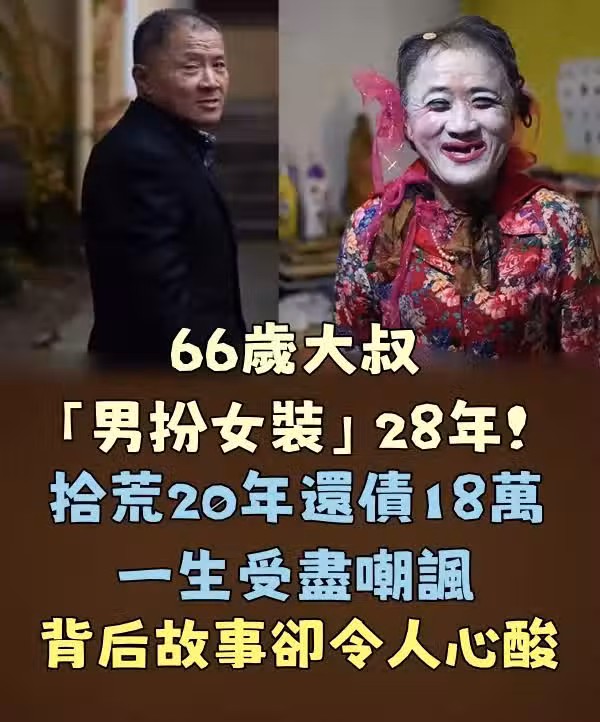 66歲大叔「男扮女裝」28年!拾荒20年還債18萬,一生受盡嘲諷,背後故事卻令人心酸
