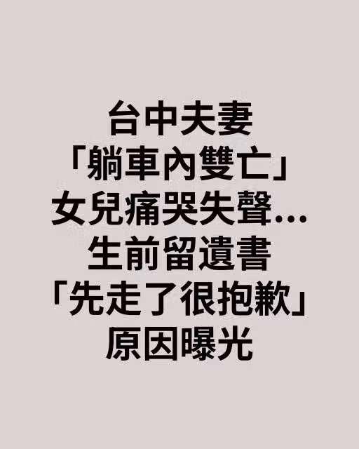 台中夫妻「躺車內雙亡」女兒痛哭失聲...生前留遺書「先走了很抱歉」原因曝光