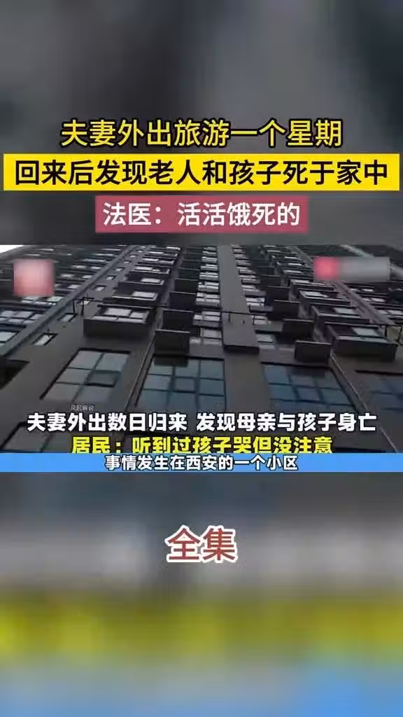 一對夫妻外出旅遊一星期快樂歸來,卻迎接如此悲痛的消息!家中年邁母親和幼女雙雙死去!警方確認無他殺痕跡,竟是悲慘的飢餓所致。