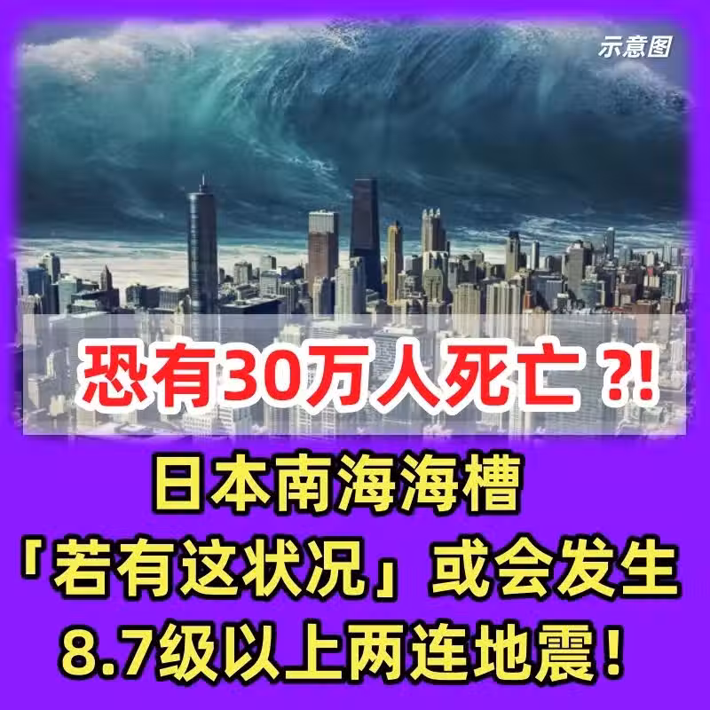 專家預測,這場地震可能造成近30萬人死亡,經濟損失高達292萬億日元(約15萬億美元),同時引發高達10米的海嘯,重創日本沿海城市,甚至影響台灣、中國東南沿海、韓國及菲律賓等地!