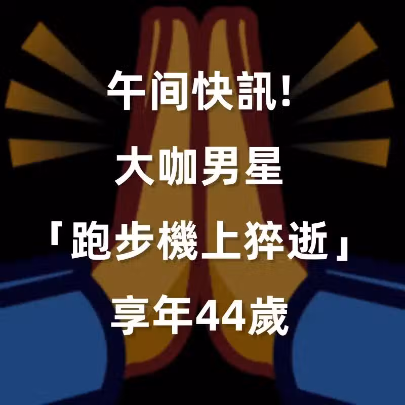 午間快訊/大咖男星「跑步機上猝逝」享年44歲!