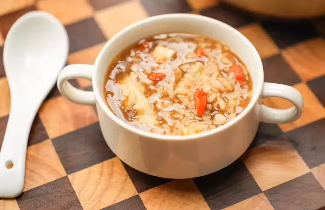 3. 慢熬45分鐘左右,起鍋前加入適量紅糖、撒入枸杞即可;