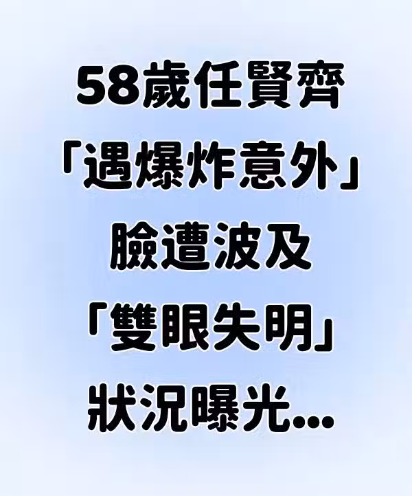 娛樂新聞/58歲任賢齊「遇爆炸意外」!臉遭波及「雙眼失明」狀況曝光.....