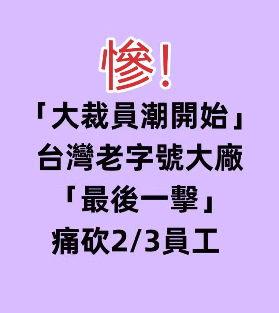 慘!「大裁員潮開始」台灣老字號大廠「最後一擊」痛砍2/3員工