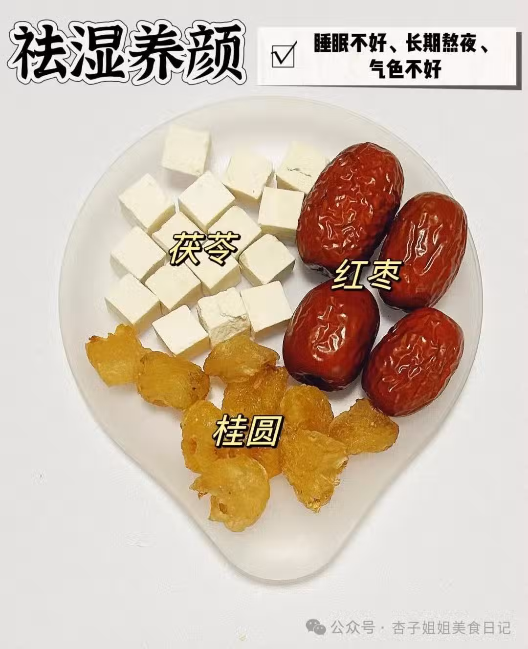 從中醫角度來看,茯苓歸心、肺、脾、腎經,具有利水滲濕、健脾寧心的功效 。很多人皮膚暗黃、長斑,往往與體內濕氣重、脾胃功能失調有關。茯苓通過利水滲濕,能幫助身體排出多餘的濕氣,減輕濕氣對身體的影響;健脾的作用又能增強脾胃的運化功能,讓氣血生化有源,使肌膚得到充足的滋養,從而改善膚色,達到美白的效果。