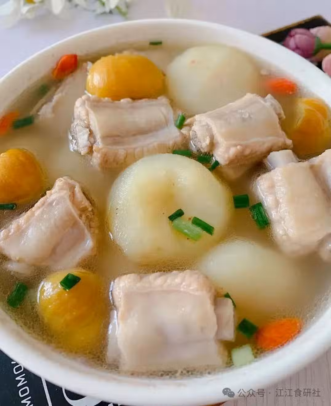 板栗,香甜粉糯,富含維生素C、B族維生素和多種礦物質,有補腎強筋、健脾養胃的作用。馬蹄,又叫荸薺,口感清甜,能清熱生津、化痰消積。排骨為湯品增添了鮮美的味道和豐富的營養。