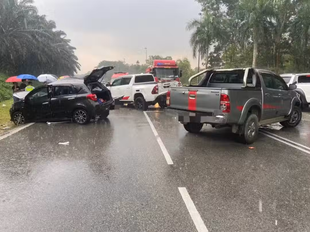 新山 2貨卡發生連環撞, 華裔婦女夾斃車內