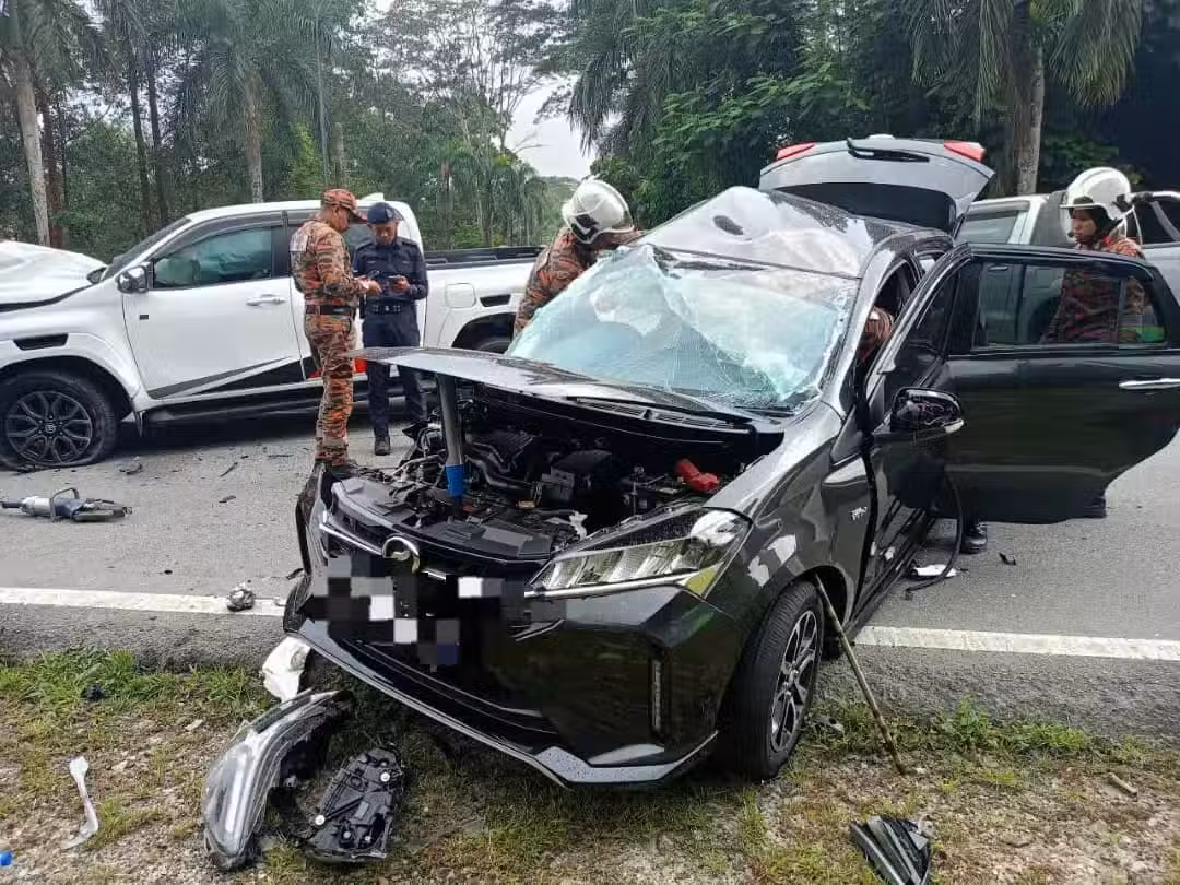 新山 2貨卡發生連環撞, 華裔婦女夾斃車內