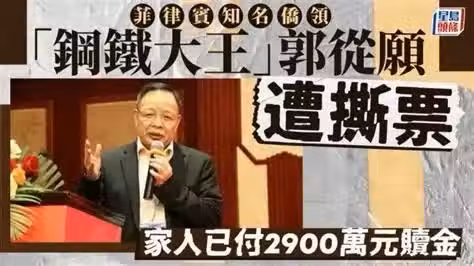 綜合菲國媒體報導,大馬尼拉描仁瑞拉市Elison鋼鐵公司老闆郭從願與其司機在3月29日,於布拉干省遭綁架。家屬告訴警方,他們曾接獲綁匪訊息,勒索巨額美元贖金。