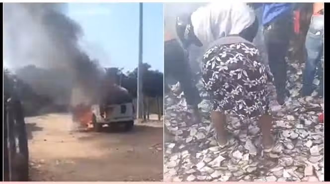 歹徒搶運鈔車 鈔票撒滿地 村民瘋搶