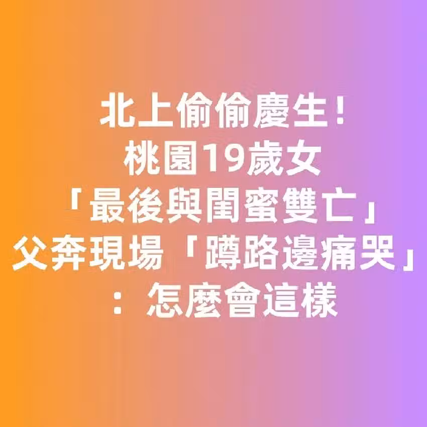 北上偷偷慶生!桃園19歲女「最後與閨蜜雙亡」...父奔現場「蹲路邊痛哭」:怎麼會這樣!
