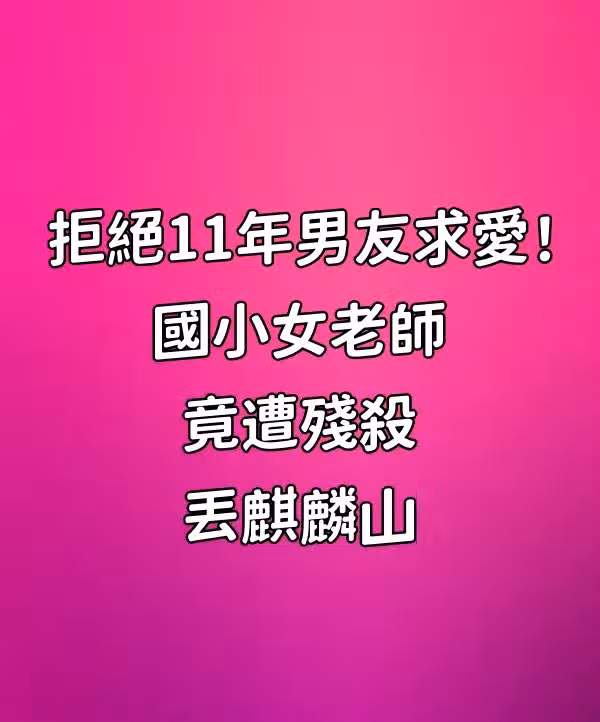 快訊/拒絕11年男友求愛!國小女老師竟遭殘.殺 丟麒麟山