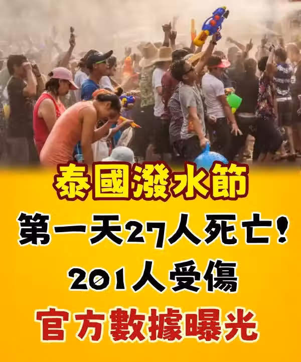 泰國一年一度的潑水節(或稱宋干節)雖然充滿歡樂氣氛,但也要注意安全!根據泰國官方公布的數據,2025年潑水節「七天危險期」第一天(4月11日)全國共發生211起交通事故,導致201人受傷、27人死亡,其中超過一半的意外發生在直線道路上。