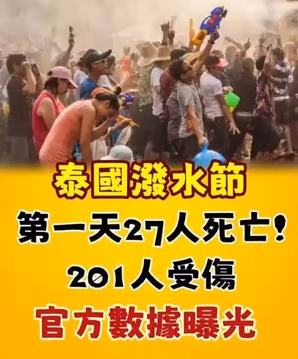 快訊/泰國潑水節第一天27人死亡!201人受傷 官方數據曝光!