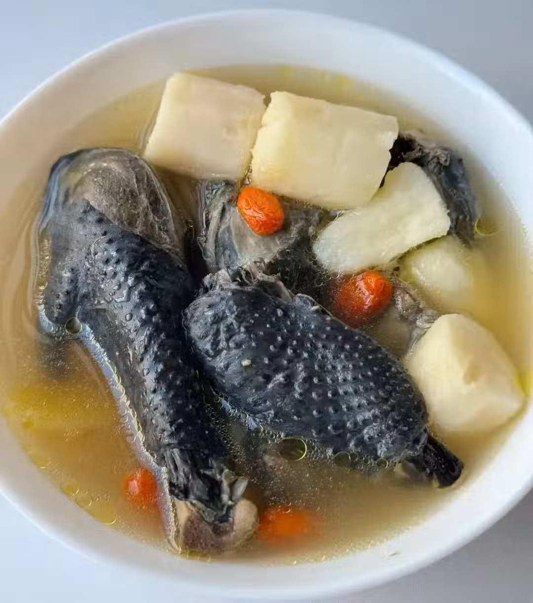 功效:烏雞有滋陰補血的作用,山藥可以健脾益胃,紅棗可以補氣補血,而枸杞有清肝明目的作用,它們的搭配可以補氣健脾,讓皮膚變得有光澤。
