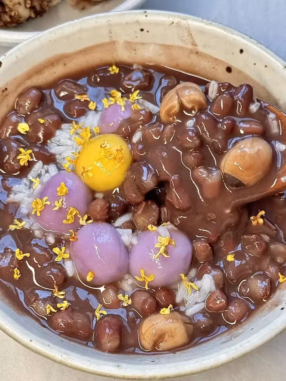 食材:陳皮1片、蓮子20克、紅豆30克、酒釀1份、圓子50克