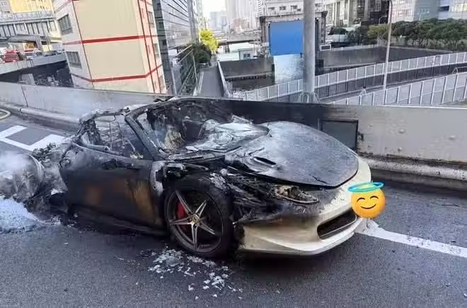 從他分享的照片來看,被燒得焦黑的跑車顯然是從後面開始起火,大火幾乎覆蓋了整輛車,只剩下前保險槓還可以看到些許的白色車漆,其他部分全是一片漆黑,甚至連車子的玻璃也全都被燒炸了。(早報網)