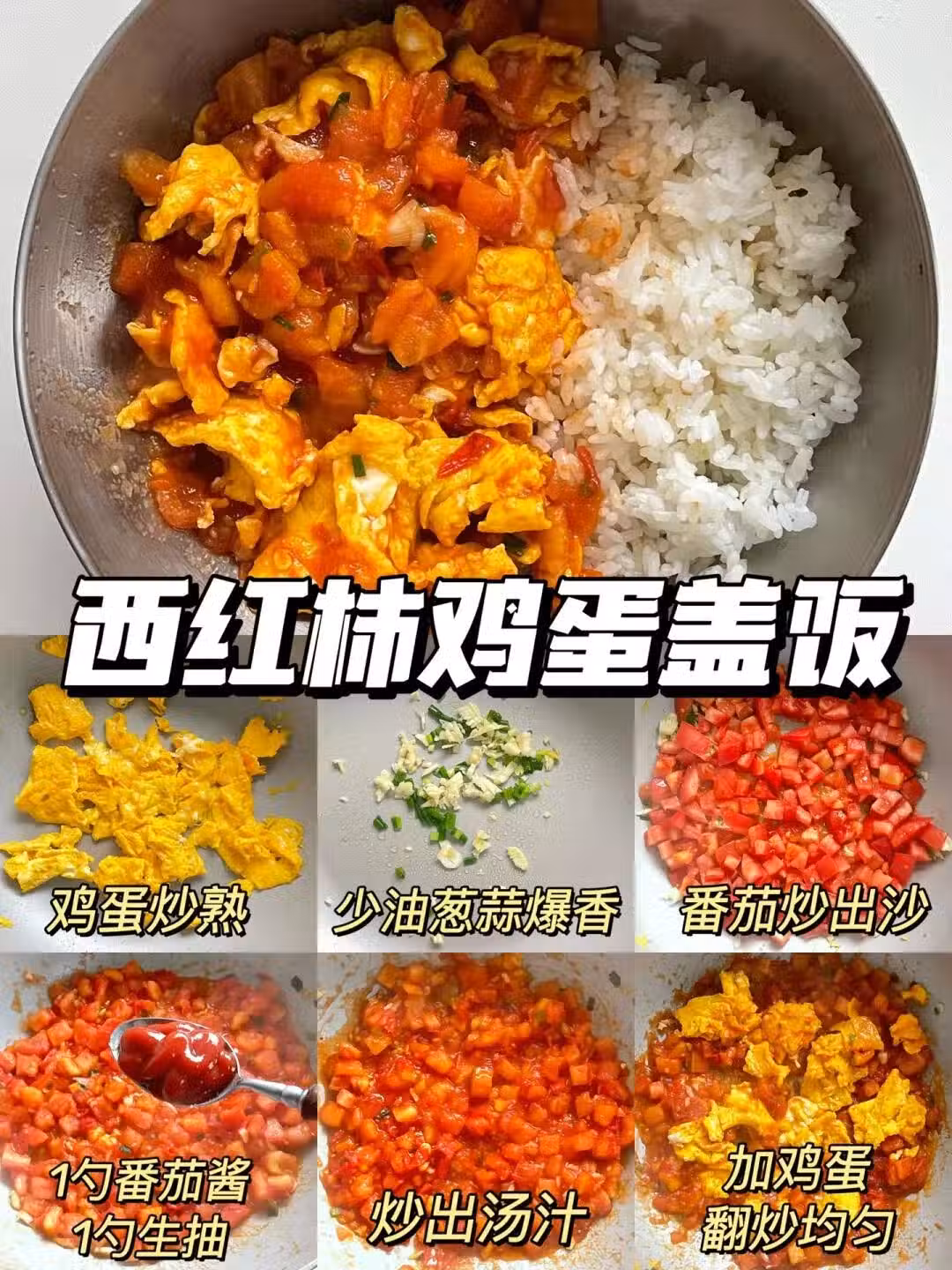 準備食材:西紅柿、雞蛋、蒜末、蔥花 配料:生抽、番茄醬 做法步驟:碗中打入雞蛋,放少許鹽打撒,油熱下雞蛋液炒熟盛出;少油下蒜末和蔥花爆香,加入番茄炒軟出沙,加一勺番茄醬和一勺生抽,翻炒出湯汁,最後加入雞蛋炒均後盛出即可。