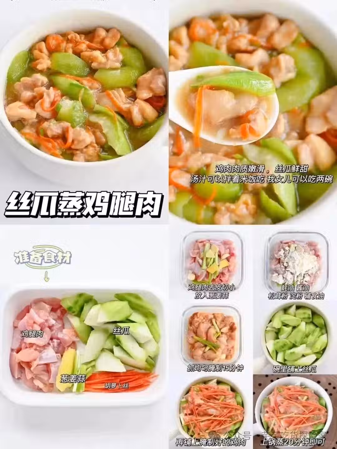 準備食材:絲瓜,雞腿,胡蘿蔔,蔥姜蒜,蚝油,醬油,生抽,澱粉,鹽。