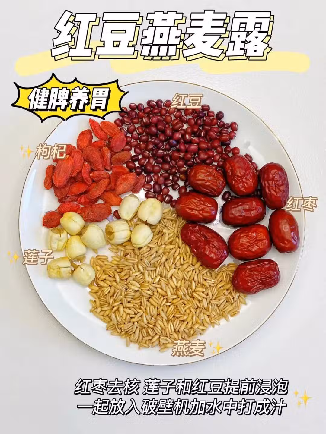 ☑️食材:紅豆+枸杞+蓮子+紅棗+薏米