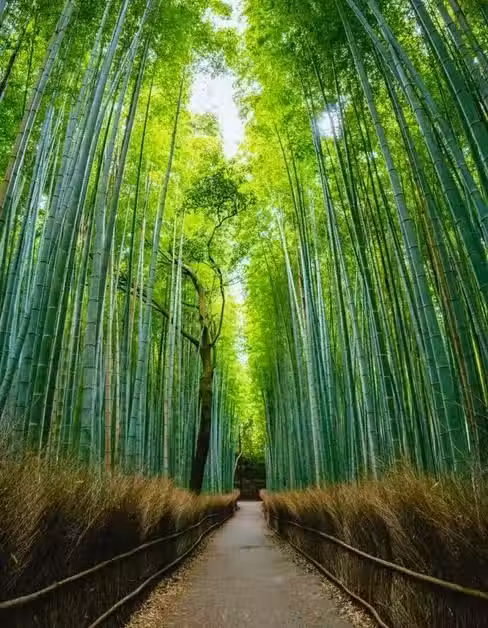 尤其是在清晨或傍晚,遊客不多的時候,竹林顯得格外空靈,光線從竹葉間透出,在地上投下斑駁的影子,是拍攝和服旅拍大片的絕佳地點。