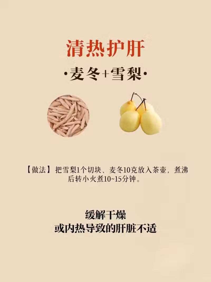 雪梨潤肺止咳,搭配麥冬,簡直是乾燥季節的「救命水」!咽乾咳嗽、皮膚起皮時來一杯,喉嚨和皮膚都水潤到發光!