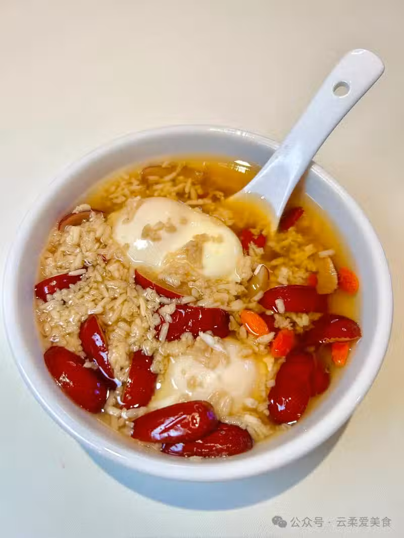 食材:紅棗6顆、雞蛋1個、甜酒釀2勺、紅糖1塊