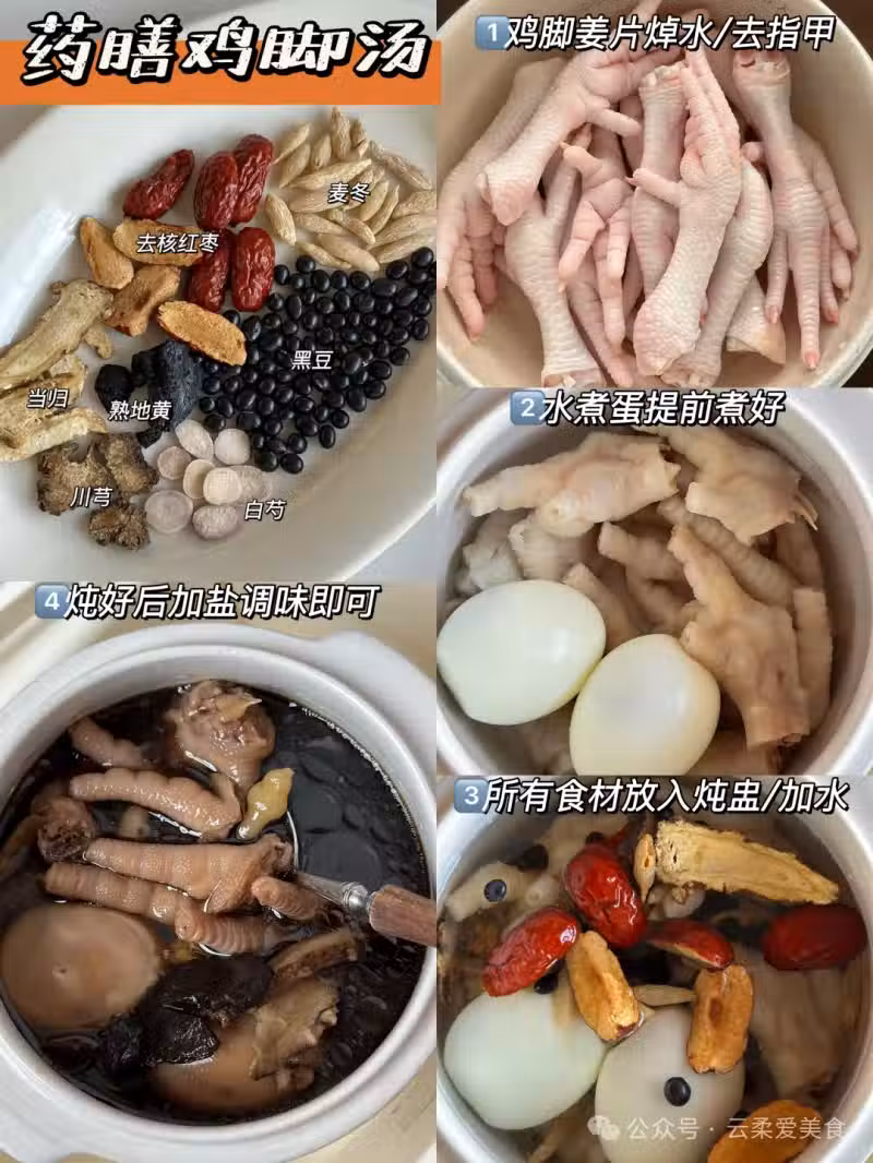 做法:雞腳提前焯水去腳趾,雞蛋提前煮好,紅棗去核,所有食材清洗乾淨,全部放入燉盅,加水,隔水燉1.5小時,燉好按喜好加鹽調味即可。