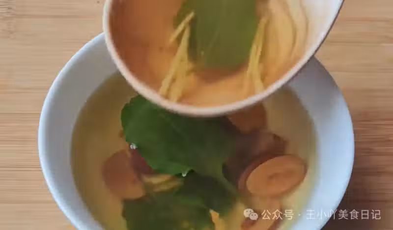 5 分鐘後,關火。將煮好的車前草、生薑、紅棗水盛入碗中。稍微放涼一會兒,就可以喝了。此時的湯汁清澈透亮,口感香甜又特別,既有紅棗的香甜,又有生薑的微辣,還有車前草的淡淡草藥味,各種味道相互交融,別有一番風味。