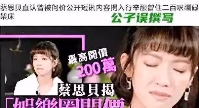 蔡思貝在採訪中還透露,他收到簡訊要求過夜,對方表示願意支付她每晚200萬的費用。