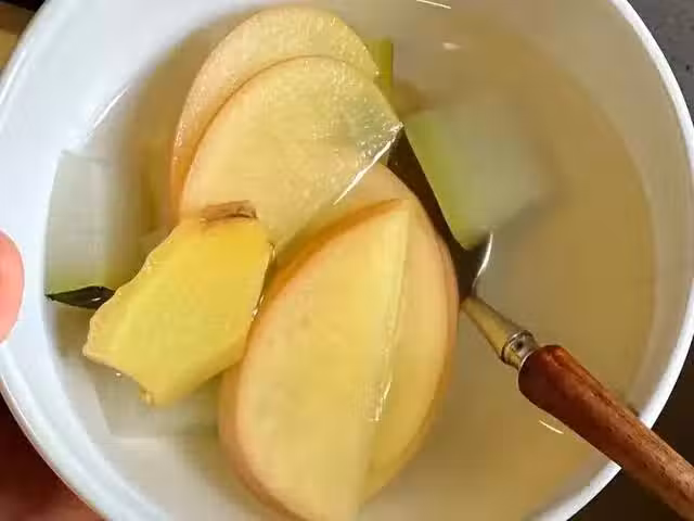 蘋果熟吃補脾胃、潤腸道;冬瓜利水化痰、祛濕,與生薑一起搭配煮水,既溫脾胃,又能升散宣發助力廢水排出,搭配起來減重清濕又不傷脾胃,非常適合痰濕重、有小肚子的朋友,同時對於腸熱的人也適合。