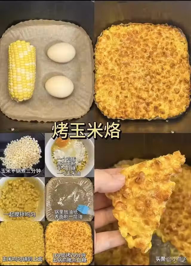 追劇時嘴巴寂寞?試試這款玉米烙!先把玉米放入鍋中焯水3分鐘,撈出後,加入由1個雞蛋、2勺麵粉、適量糖和玉米油混合而成的麵糊,攪拌均勻。把混合好的玉米鋪在空氣炸鍋內,160℃烤制20分鐘。出鍋後撒上白糖,竟然還會拉絲!比夜市賣的還要香,一口接一口根本停不下來!