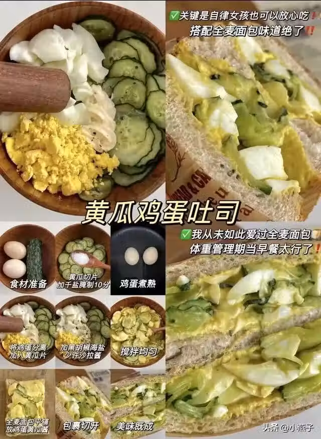 食材:全麥麵包2片、黃瓜1/2根、雞蛋2個