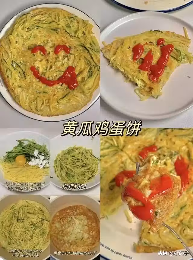 食材:黃瓜絲100g、土豆絲100g、雞蛋2個、澱粉2勺。