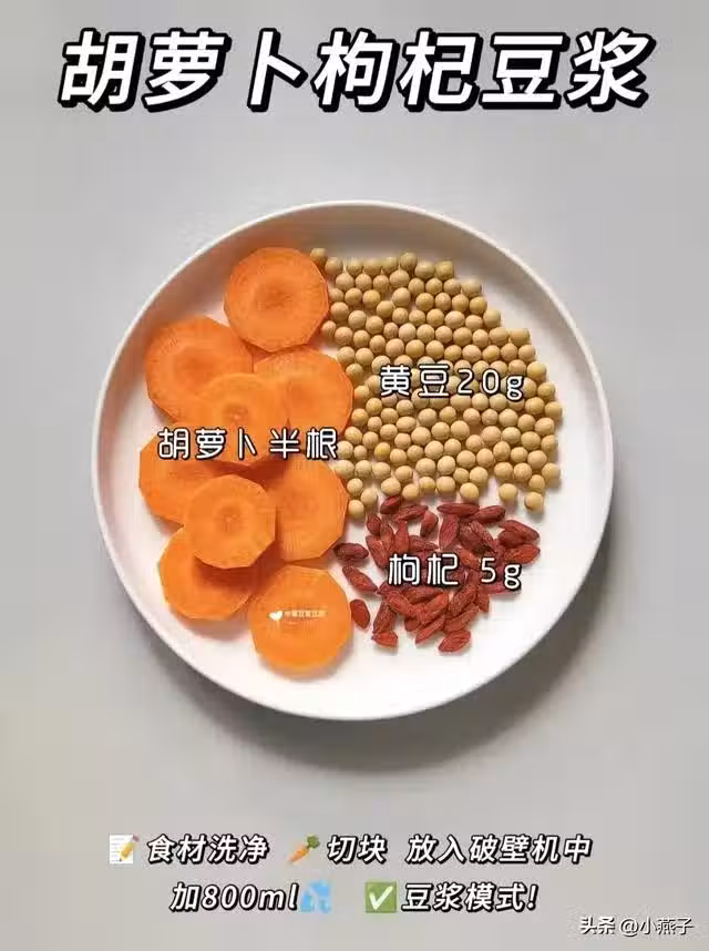 食材:胡蘿蔔半根+黃豆20g+枸杞5g。