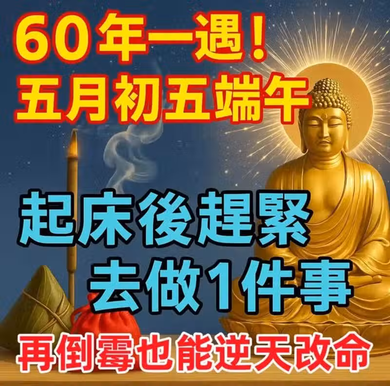 ?60年一遇!今年端午大不同!2025年五月初五剛好碰上「歲破日+蛇年能量轉換關鍵」,起床後若能立刻做對「這1件事」,就能開啟全年的好運之門!不做,霉運繼續;一做,橫財、貴人、健康全來!