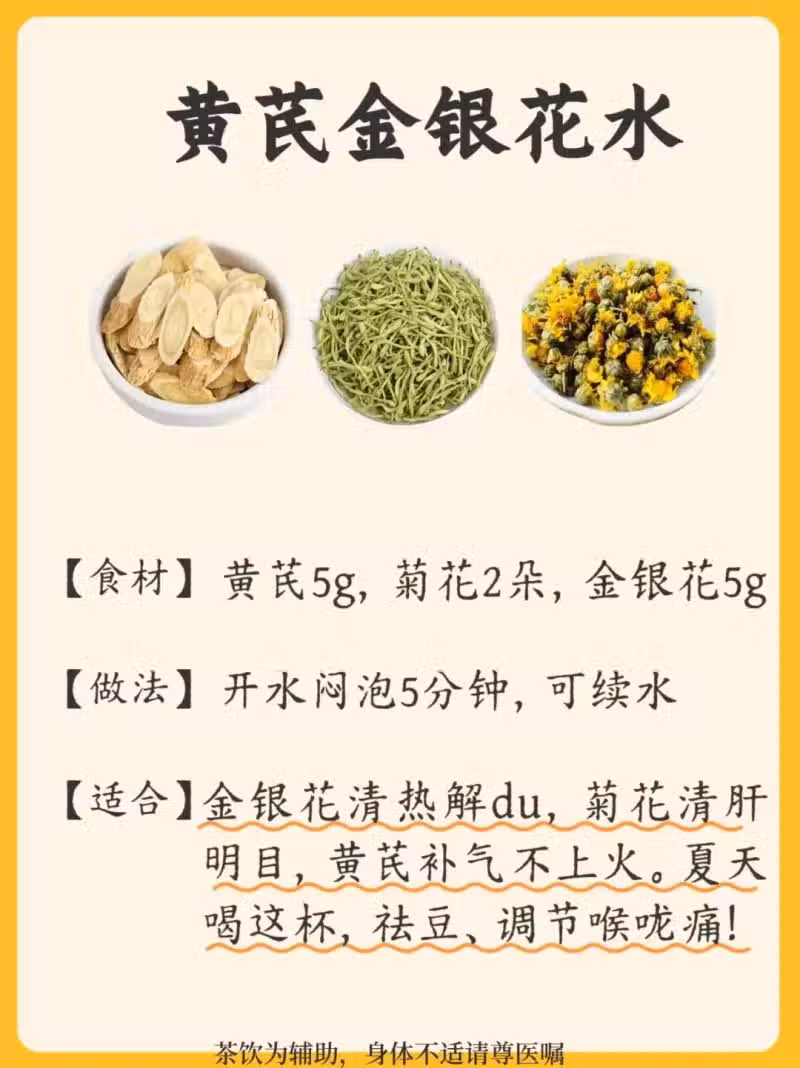 ✔️金銀花清熱解毒,菊花清肝明目,黃芪補氣不上火。夏天喝這杯,再也不怕長痘、喉嚨痛!