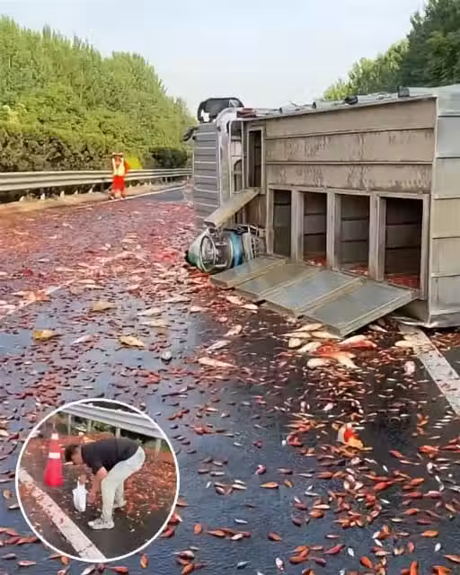 貨車高速公路上翻車,車廂內貨物「灑落行車道」,路人細看後驚恐:竟都是活物!