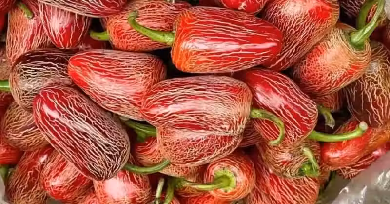 果皮剖開的一瞬間,果肉的紋理清晰可見,散發出一絲淡淡的辣味,但並不像普通辣椒那樣嗆鼻。