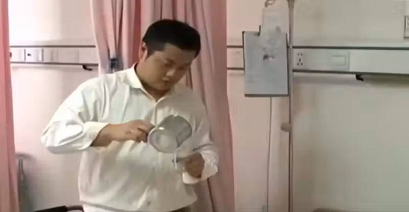 回到病房,他又小心地把食材洗凈、切塊,放進破壁機里打成細細的糊狀,再通過食管導管,一點點喂給妻子。