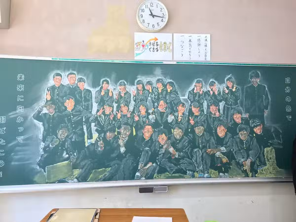 學生「@soccerkaito8821」就在推特分享老師的作品,同時告訴大家:「老師在畢業典禮前一天,花7個半小時畫了這個給我們,真是太厲害了!」還有一位學生在IG感激地說:「老師畫了這個,我們真的只有感謝了。」