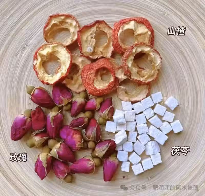 5️⃣🌿提亮膚色:茯苓10g、玫瑰6朵、 山楂5片