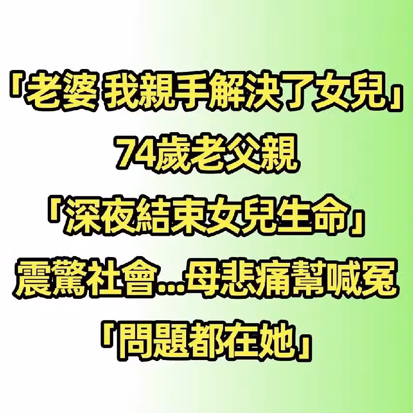 「老婆,我親手解決了女兒!」 74歲老父親「深夜結束女兒生命」震驚社會...母悲痛幫喊冤「問題都在她」