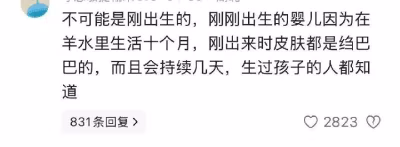 不過,也有人質疑,這個孩子並不是剛出生的寶寶,因為寶寶剛出生不可能有這麼緊緻的皮膚。