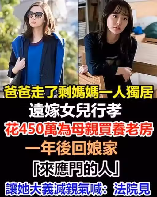 爸爸走了剩媽媽一人獨居!遠嫁女兒行孝「花450萬為母親買養老房...」,一年後回娘家「來應門的人」讓她大義滅親氣喊:法院見
