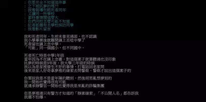 尤其男大生的描述夢中女孩坦言「是我的親戚做的」,也照印象「畫出來的生活照」,幾乎都跟線索吻合,然而就在希望重啟案件時,崔曉菁的外婆竟然拍桌大喊:「不要辦!」發現失態後,竟還變臉改口:「不要想起悲傷的事!」啟人疑竇。