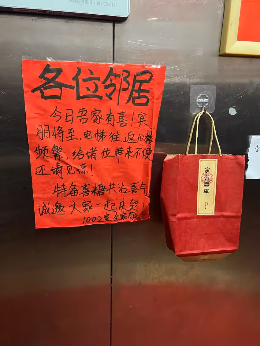 家有喜事!他在電梯「放一大包喜糖」分享喜悅 最後「竟收到兩張紙條回復」網贊爆:太有愛...