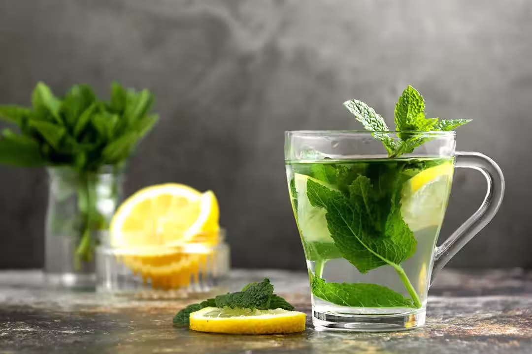 食材:綠豆40克、干菊花10朵、新鮮薄荷葉5克、檸檬半顆、甘草3片。。