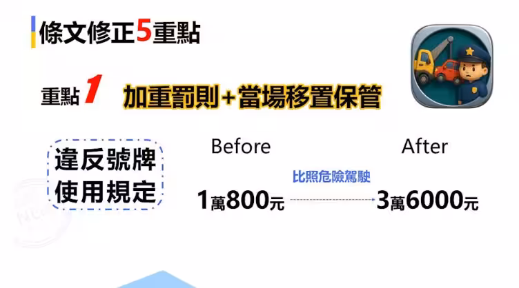 若駕駛人明知車輛的車牌有問題仍執意上路,也將被處以最高3萬6000元的罰款。